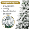 De boom is vervaardigd van duurzaam PVC, waardoor hij stevig, veerkrachtig en herbruikbaar is voor vele kerstseizoenen. Dankzij de volle, realistische takken kunt u uw favoriete kerstdecoraties gemakkelijk ophangen en krijgt de boom een luxueuze, natuurlijke uitstraling. De eenvoudige montage en stabiele standaard maken het opzetten moeiteloos, zodat u snel kunt genieten van de feestelijke sfeer.