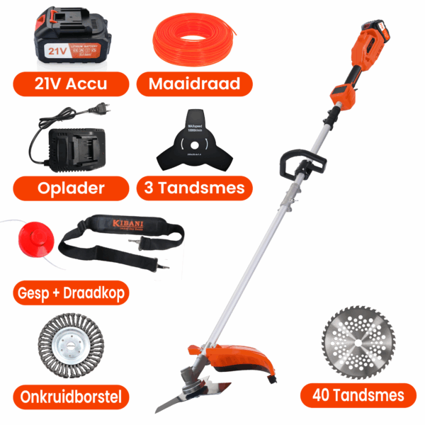 De Kibani Accu Bosmaaier model 2025 is een krachtige en veelzijdige tool die tuinonderhoud eenvoudiger en efficiënter maakt. Of u nu gras, onkruid of kleine struiken wilt trimmen, deze bosmaaier biedt de kracht en precisie die u nodig heeft, zonder dat u gebonden bent aan een stroomkabel. Dankzij de draadloze accu kunt u moeiteloos manoeuvreren, zelfs op moeilijk bereikbare plekken in uw tuin.