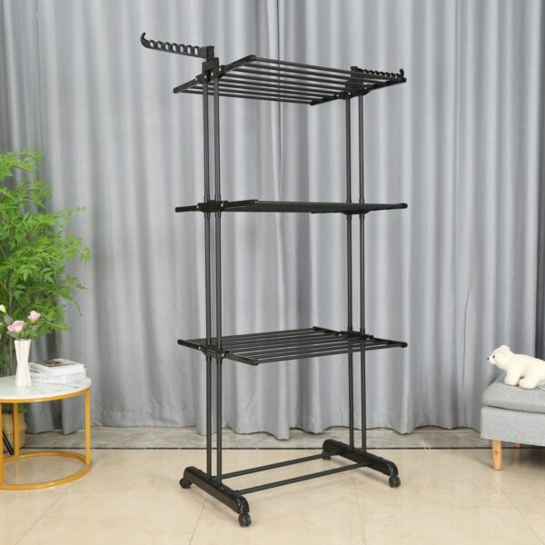 Het droogrek is ontworpen met een stevig en stabiel frame, zodat het moeiteloos meerdere kledingstukken tegelijk kan dragen. Dankzij de handige inklapfunctie is het rek eenvoudig op te zetten wanneer u het nodig heeft en net zo gemakkelijk weer op te bergen, zonder dat het veel ruimte inneemt. Dit maakt het ideaal voor zowel kleinere woningen als grotere huishoudens.