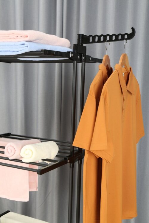 Het Alora Droogrek zwart is de perfecte combinatie van stijl en functionaliteit voor uw huishouden. Met zijn moderne, strakke afwerking in zwart past dit droogrek niet alleen praktisch in elke ruimte, maar oogt het ook elegant en eigentijds. Of u nu uw was binnenshuis wilt drogen of buiten in de zon, dit rek biedt u altijd de ruimte die u nodig heeft.
