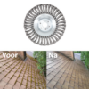 Met een diameter van 15 cm zijn de borstels compact en wendbaar, waardoor ze zeer geschikt zijn voor het schoonmaken van bestrating, opritten, terrassen en tuinpaden. De sterke stalen borstelharen schrapen moeiteloos onkruid, mos en gras uit voegen en naden, zodat uw bestrating er weer netjes en verzorgd uitziet.